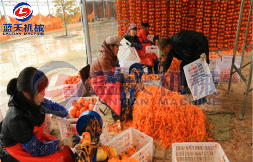 柿餅加工工藝流程:選果→去皮→裝盤→第一次烘烤→停烤→第二次烘烤→???rarr;第三次烘烤→???rarr;真空包裝→入庫。
