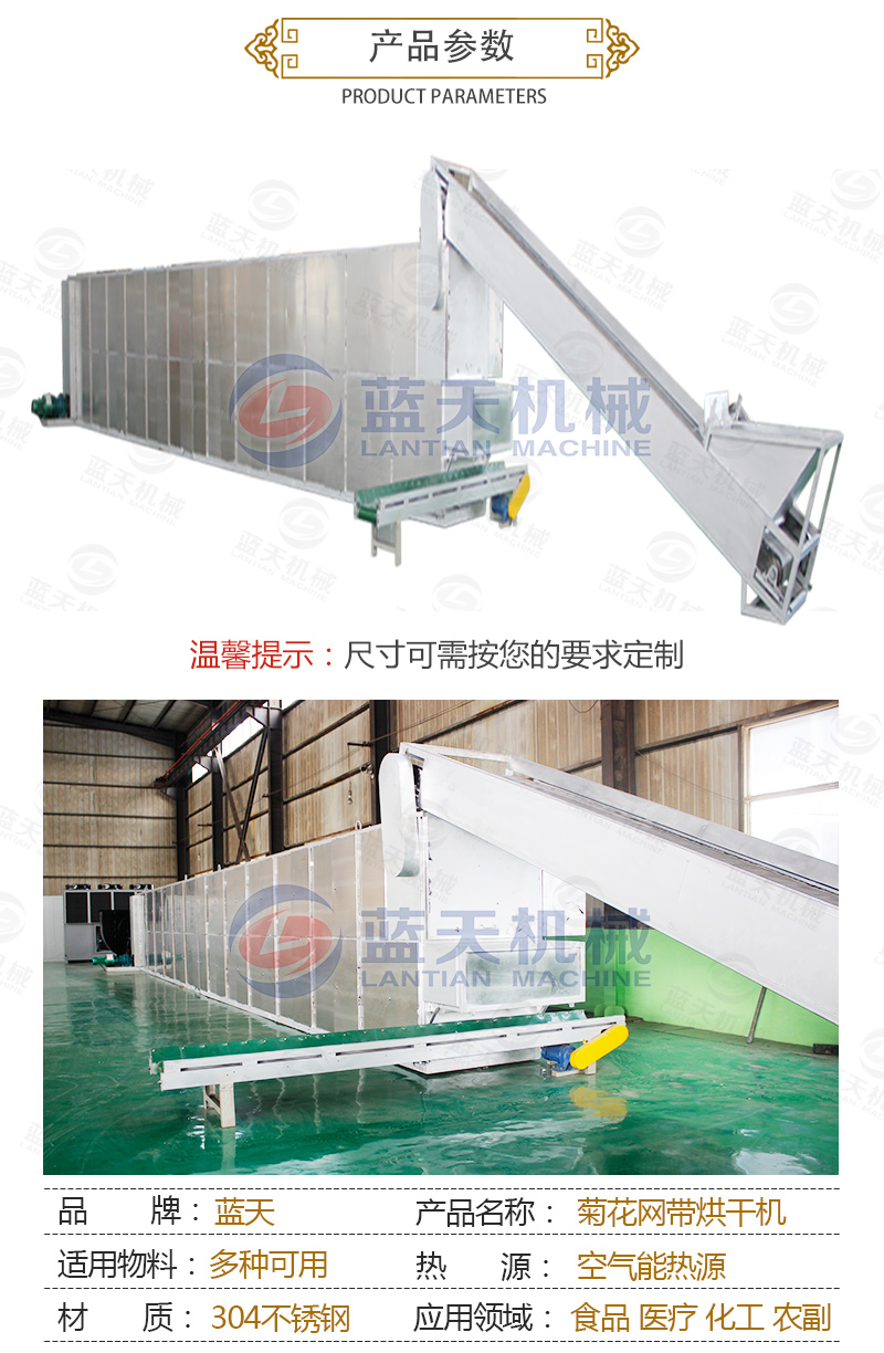 隨著生活水平的提高和壓力的增大,人們都逐漸注意養(yǎng)生,干菊花的市場(chǎng)是很大的。干菊花大多用于泡茶飲用,具有味濃香甜、去膩消食、醒腦益神之功能。菊花收獲的旺季,一直靠天晾曬菊花的菊農(nóng)就怕遇見(jiàn)陰雨天。隨著社會(huì)的進(jìn)步,科技的發(fā)展,智能烘干設(shè)備越來(lái)越深得用戶的滿意,菊花網(wǎng)帶烘干機(jī)讓菊農(nóng)徹底擺脫了靠天烘干收獲菊花的苦惱。同時(shí)牽扯到人們食用,菊花網(wǎng)帶烘干機(jī)工藝要求就很是嚴(yán)格的,因?yàn)楹芏嗑栈ㄐ枨笊虒?duì)于烘干后的菊花的色、香、形、味要求很高,要求干燥烘干后的菊花原色、原味、原樣,這就要求菊花成熟后烘干,菊花頭部分進(jìn)行強(qiáng)干燥烘干,而對(duì)菊花花瓣部分進(jìn)行弱干燥烘干。我們藍(lán)天菊花烘干機(jī)設(shè)備廠家主營(yíng)的烘干機(jī)采用智能化控制溫度,全自動(dòng)免人工操作,省時(shí)省力,讓菊花客戶打心里贊同和喜歡。