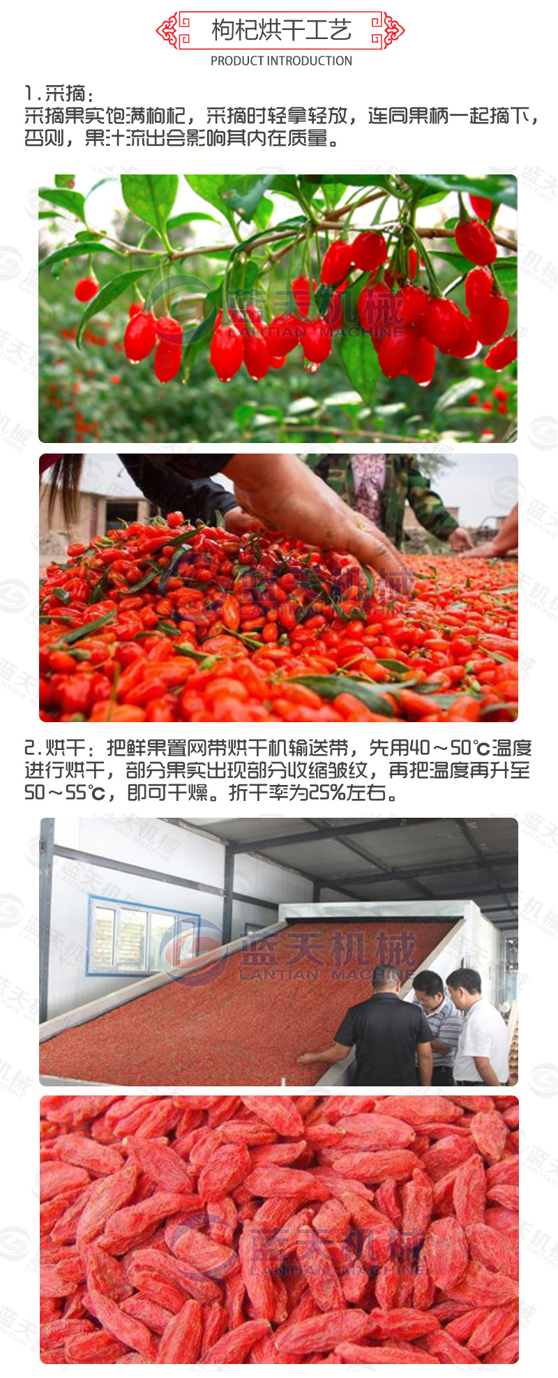 2、枸杞網(wǎng)帶烘干機烘干出來的枸杞色澤優(yōu)于自然晾曬的色澤,色正味純、細(xì)密、無黑斑,可滿足烘干各種產(chǎn)品要求,有效地保證了烘品的自然品質(zhì)。