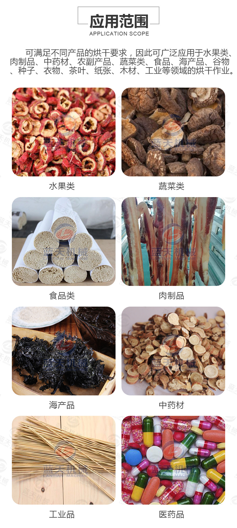 新鮮山楂片的含水率約為80%,烘干的目標(biāo)含水率約為13%,使用空氣能熱泵小型山楂片烘干機(jī),將智能溫度設(shè)定為55度左右的范圍,使山楂片所含的游離水大量蒸發(fā),熱風(fēng)循環(huán)系統(tǒng)不斷輸送新風(fēng),將風(fēng)量均勻的輸送到各層架,排風(fēng),促使蒸發(fā)的水份通過(guò)凝結(jié)水管路系統(tǒng)排出。