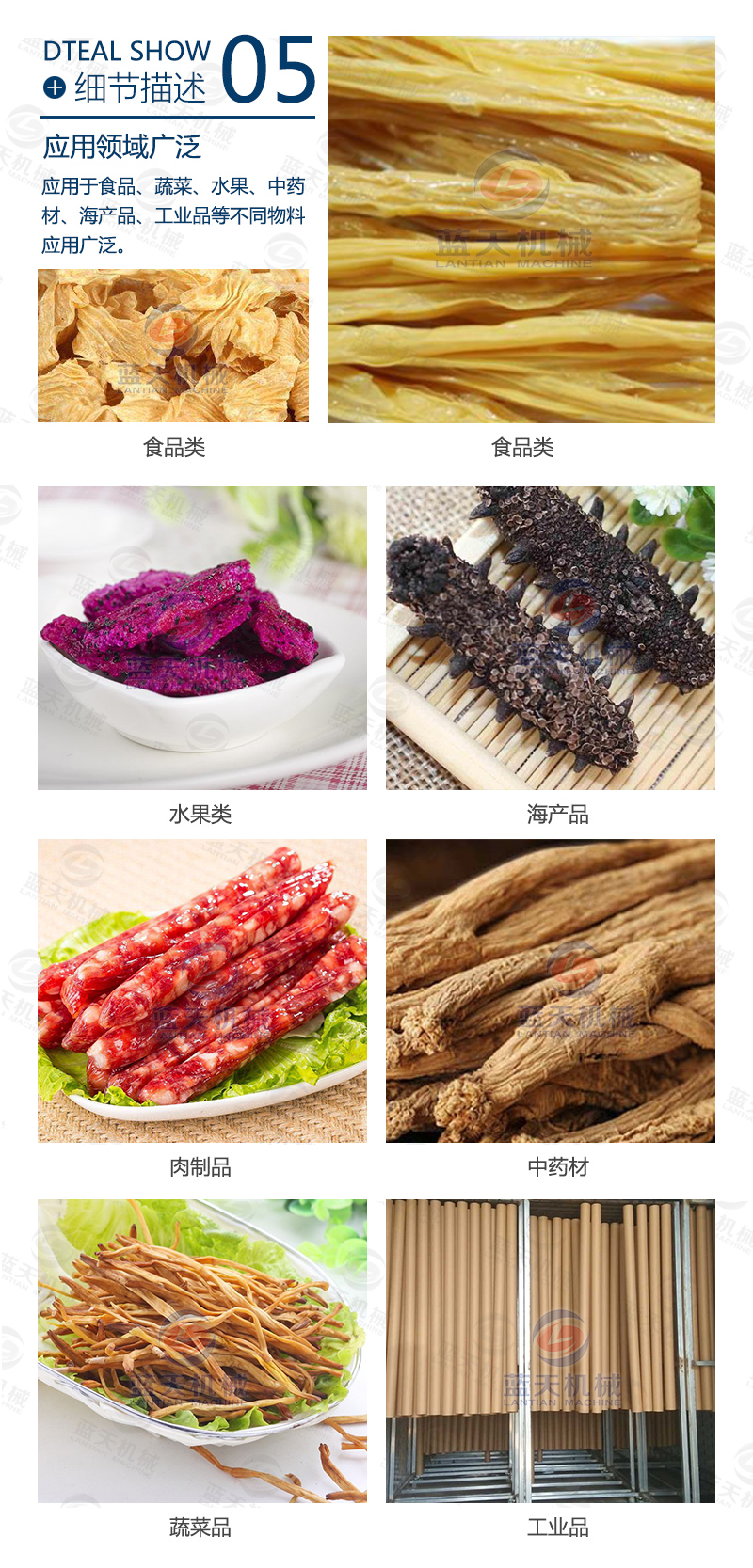 2:腐竹屬于食品類材料的烘干,用腐竹烘干機烘干腐竹的整個烘干過程需要注意控制好溫度,烘干過程需要保持濕度而不是快速除去濕度。同時,溫度控制決定了腐竹的膨化,表面的油份,色澤等重要品質(zhì)。另外,對于濕度控制不當,烘干過程,裝箱過程會導致腐竹脆斷,影響成品腐竹的產(chǎn)量,造成浪費。溫度太高容易斷裂或炸裂,影響外觀;溫度過低容易腐爛。另外定色定型,保證成品的外觀、飽滿度和復水性也相當重要,像面條、米粉、腐竹、豆腐干及菌菇類,如香菇、松茸、木耳、雞腿菇等等烘干過程也應注意上述原則。