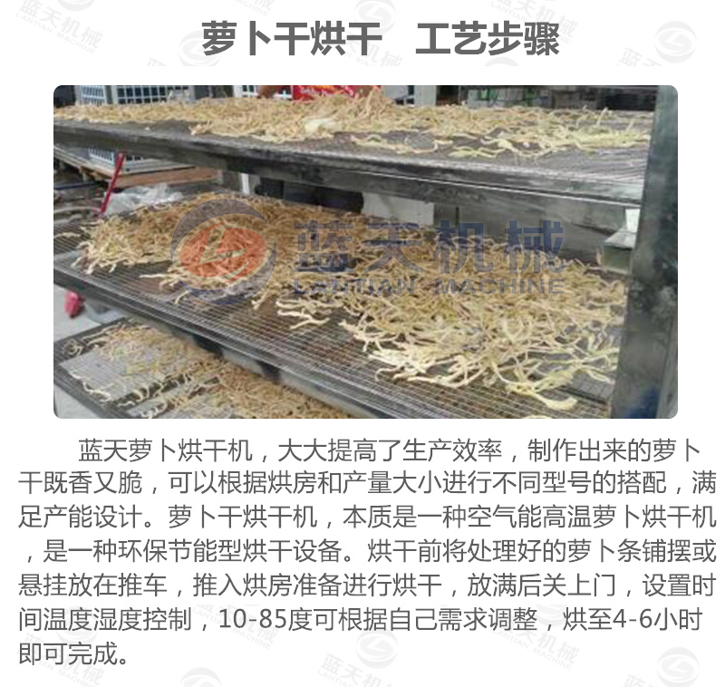 蘿卜干是一種風(fēng)味、具有悠久歷史的食品。傳統(tǒng)蘿卜干加工采用是風(fēng)脫水的方法,利用日照和風(fēng)力,加速蘿卜的蒸騰作用,使蘿卜大量脫水,并利用鹽的高滲透壓來保存。我們介紹一種基于空氣能技術(shù)熱風(fēng)烘干的蘿卜干烘干機代替日曬來加工蘿卜干,加快蘿卜干加工過程。