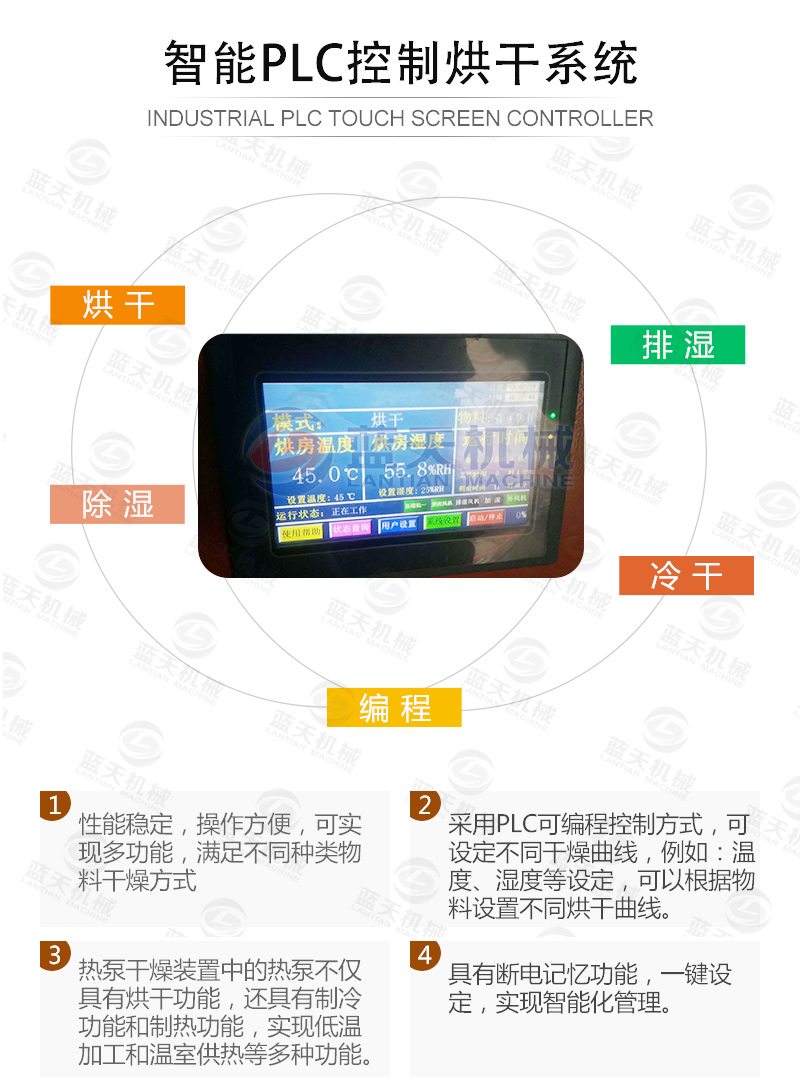 2、烘干時間短。高溫?zé)岜煤娓擅撍卟松a(chǎn)工藝,所需用的時間不會超過8h,一般從預(yù)熱到出產(chǎn)品4h即可完成。