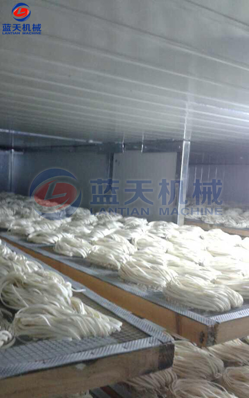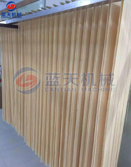有些掛面容易在烘干過程中容易斷,有些不容易斷(玉米淀粉有幫助?。?,有些不能耐受溫度,溫度一高就容易斷,如果用太陽曬的話,盛夏上午10點鐘的太陽就能把掛面曬斷。有些溫度可以高一些。有些掛面一定要大量的風(fēng)量,否則中間的掛面就酸掉了!面條烘干機(jī)系統(tǒng)設(shè)計中非常重要的環(huán)節(jié)就是風(fēng)路設(shè)計,對于大部分掛面的烘干來說,使用頂出風(fēng)機(jī)組再結(jié)合上下風(fēng)路更利于風(fēng)路循環(huán),更利于面條的烘干。