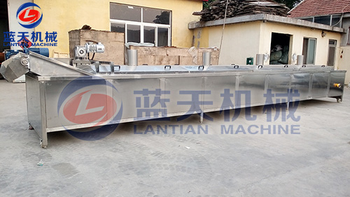 新鮮竹筍切掉老根去皮,清洗干凈后放進(jìn)蒸煮鍋里蒸煮,蒸煮后撈出過冷然后用壓片機(jī)進(jìn)行壓片脫水。