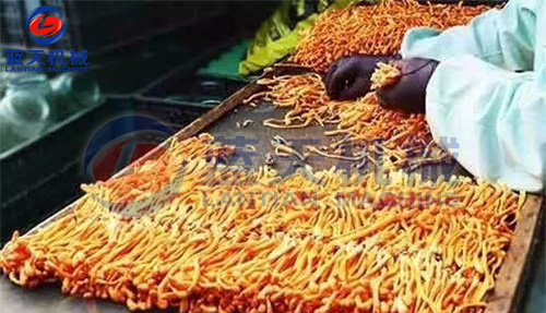 北蟲草應該使用烘干機進行烘干,烘干系統的潮氣排量不好,對子座體有高溫熟化膠質感觀,失去部分蟲草活性有效成分,因此,烘干過程中注意快速排潮氣,不然影響北蟲草內在質量及價格。