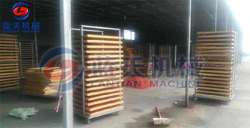 辣椒的堆放厚度:辣椒的堆放厚度力求一至,一般20~30厘米為宜,堆放太薄,透氣性好,風(fēng)阻小,雖然有利于熱交換,但熱空氣與辣椒的接觸時(shí)間相對(duì)縮短,熱利用率低,若堆放太厚,則阻力增太,熱空氣無(wú)法穿透物層,烘干效果較差。