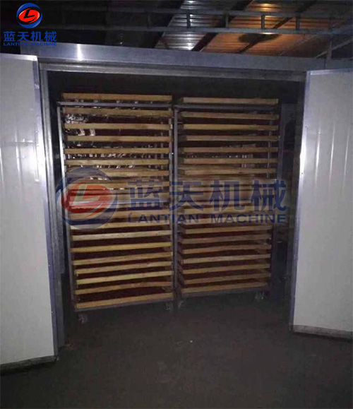 踩堆發(fā)汗:即將含水率75%一85%的辣椒,第一次將辣椒烘干到含水率50%踩堆發(fā)汗,再進(jìn)行第二次烘干。踩堆發(fā)汗在辣椒干燥工藝中是一個(gè)很重要的步驟,是否采用這一步驟對(duì)辣椒品質(zhì)和烘干時(shí)間、都有很大影響。辣椒在烘干過(guò)程中都有明顯的軟化和膨脹現(xiàn)象。踩堆發(fā)汗的主要作用是調(diào)質(zhì),使辣椒油向表面滲透,烘干后的辣椒顏色一致,紅潤(rùn)光滑,并促使辣椒含水率趨于平衡。如不進(jìn)行踩堆發(fā)汗,烘干1000公斤辣椒,熱風(fēng)溫度40℃—60℃時(shí) 需時(shí)間63小時(shí),踩堆發(fā)汗后則可縮短到40小時(shí)左右,且花黃殼顯著減少。