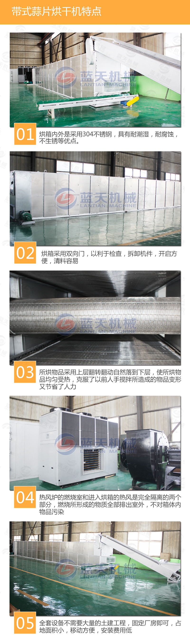 【帶式蒜片烘干機(jī)烘干蒜片步驟:】
