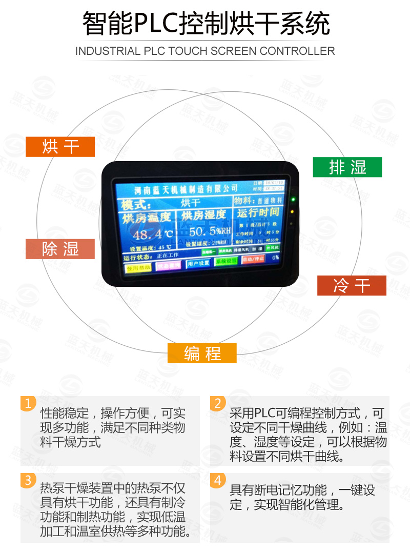 1.熱泵主機(jī)產(chǎn)生的熱量經(jīng)過(guò)轉(zhuǎn)換器轉(zhuǎn)換成溫度適宜的純凈熱風(fēng)由風(fēng)機(jī)輸送到烘干機(jī)內(nèi)部;