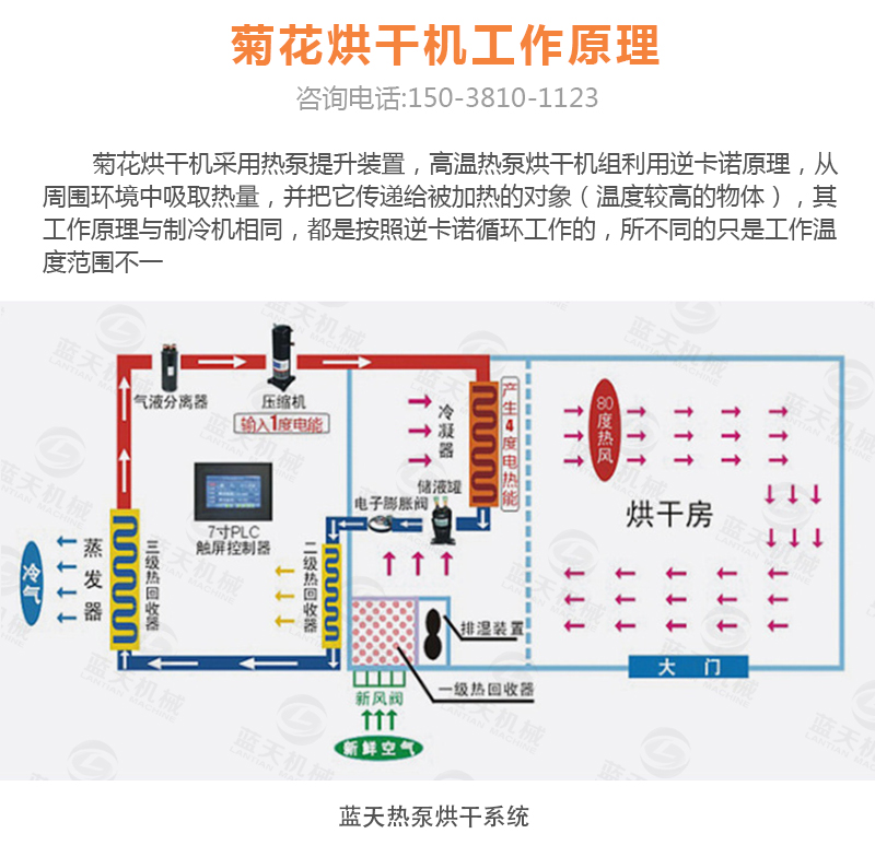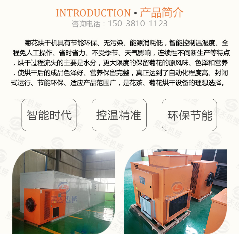 【使用熱泵菊花烘干機設(shè)備有以下特點:】