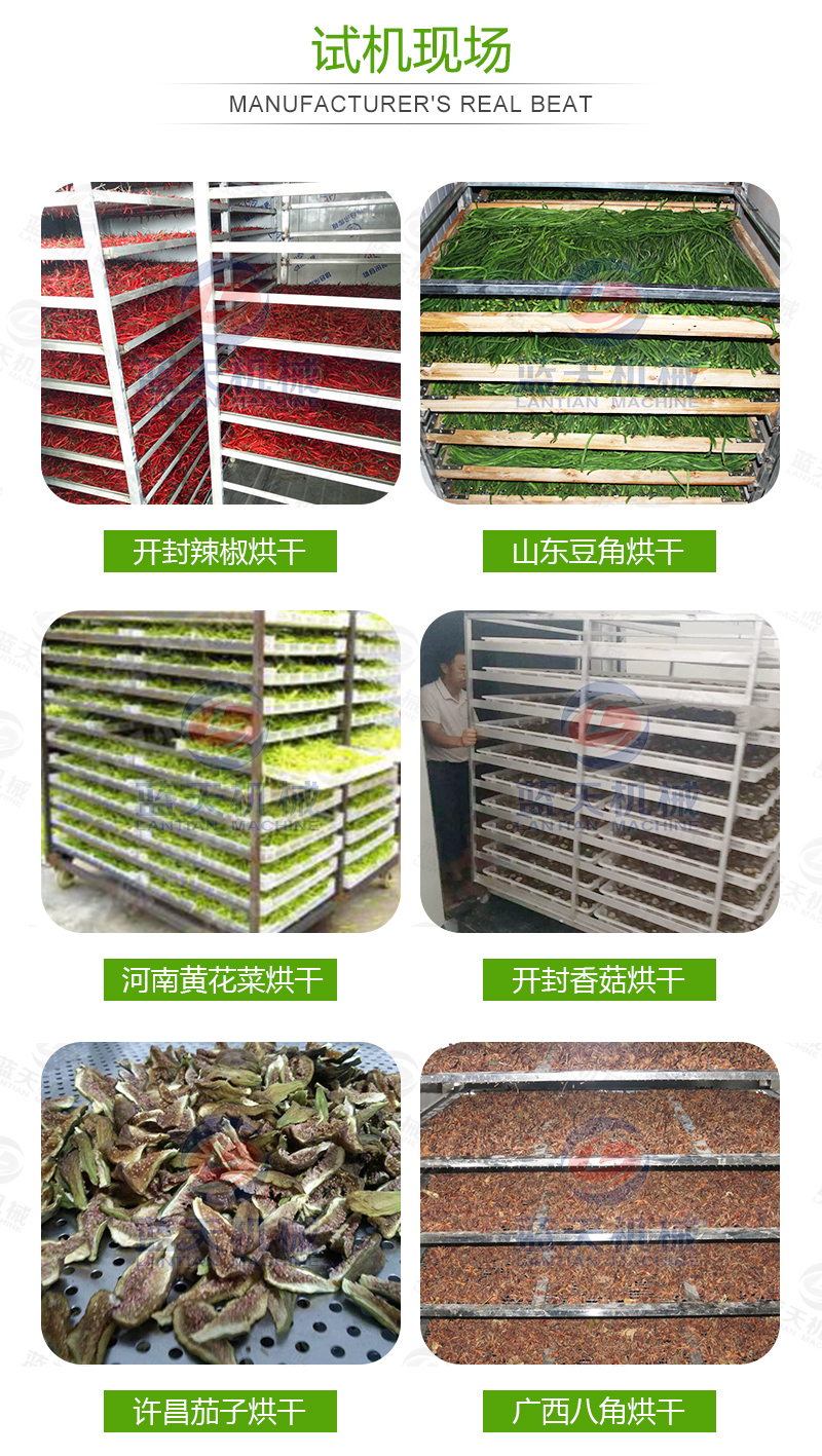 當(dāng)大型黃花菜烘干設(shè)備開始持續(xù)排水后,注意觀察水流大小和相對濕度比值,繼續(xù)升溫,溫度上升到60度,持續(xù)5小時。