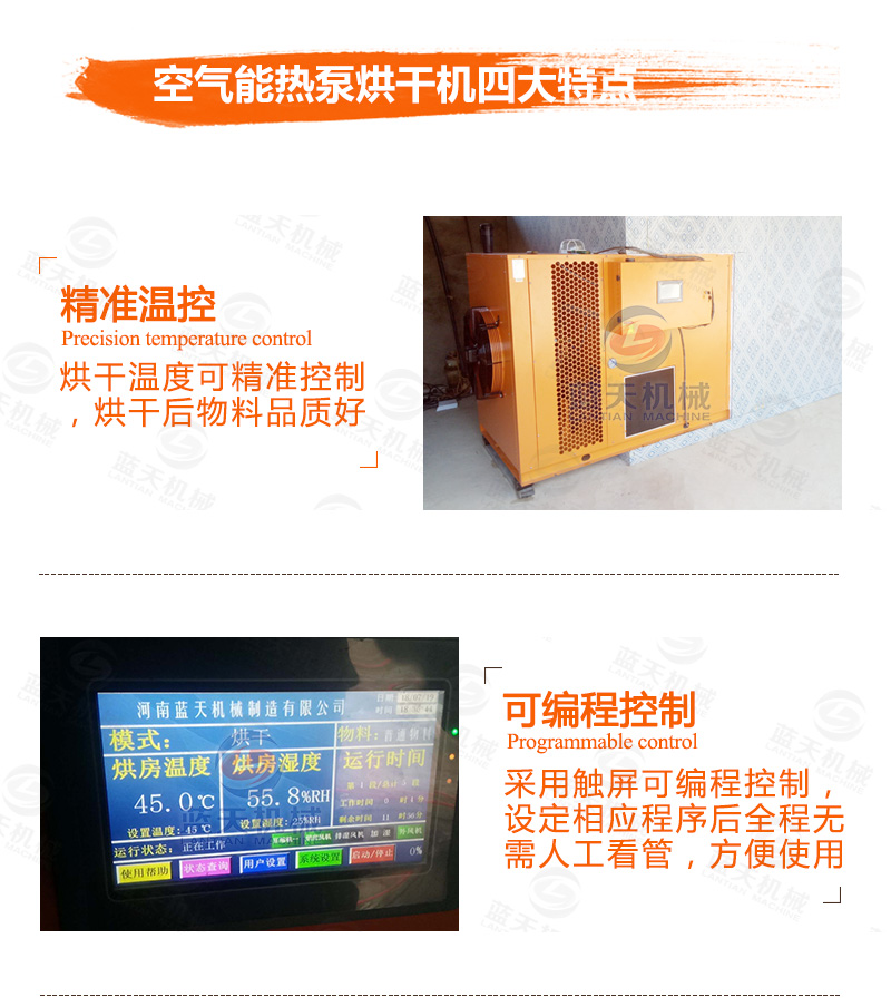 升溫階段:將裝好鮮枸杞的托盤,平整的放入烘箱,不能重疊,避免托盤放置不好造成不必要的漏風。關閉箱門打開空氣能熱泵主機,開始向箱內送熱風,逐漸將箱內溫度加熱到50°,加熱30分鐘~1.5小時,看箱內有濕氣時,開始排潮,大約排潮2分鐘左右,排潮后箱內溫度會有所下降,繼續(xù)供熱。
